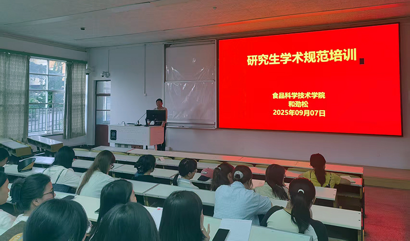 2025年9月7日晚,食品科学技术学院在厚德楼2-5教室进行了2025级全体研究生新生学术规范培训,由院长和劲松主讲。