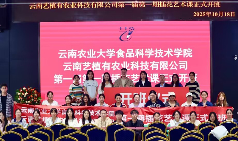 为丰富学生技能储备、拓宽就业选择,2025年10月18日,云南农业大学食品科学技术学院与云南艺植有农业科技有限公司合作的第一期插花艺术培训在就创中心122教室开班。